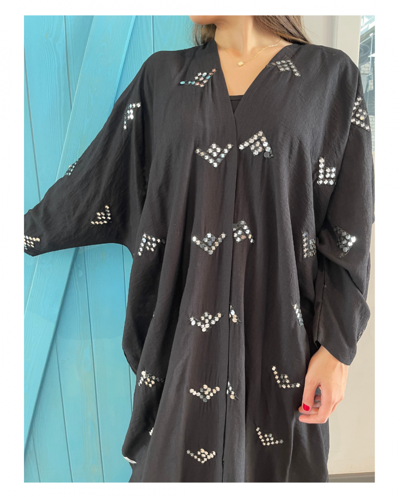 عباية كريب اسود مطرز . • للمقاسات الخاصة الرجاء كتابة المقاسات في خانة الملاحضات . • رقم المنتج : | 015 .