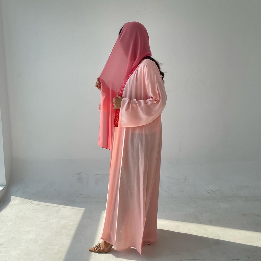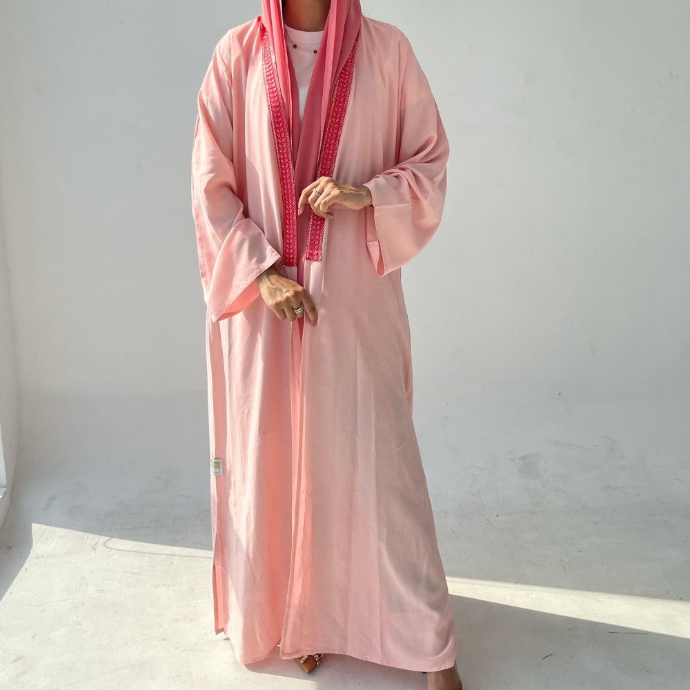 عباية قطن خفيف بارد وردي مع تطريز من الامام ، الطرحة وردي غامق .للمقاسات الخاصة قبل اتمام الطلب الرجاء كتابة المقاسات في خانة الملاحظات ..